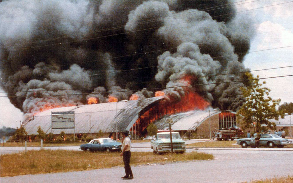 Two years later another major fire struck the community. Flames roared through the Wicomico Youth & Civic Center, on June 27, 1977. Fire had engulfed the main structure before firefighters arrived on the scene. They were met with a tremendous wall of flames and thick billowing smoke. They fought hard but were unable to bring the blaze under control and the main portion of the building burned to the ground. However, firefighters were able to save the Midway Room that still stands and is in use today. Another major fire occurred in July 1979 in the Downtown section of the City. The Benjamins fire brought fire departments from as far away as Ocean City and Cambridge to assist the Salisbury firefighters.